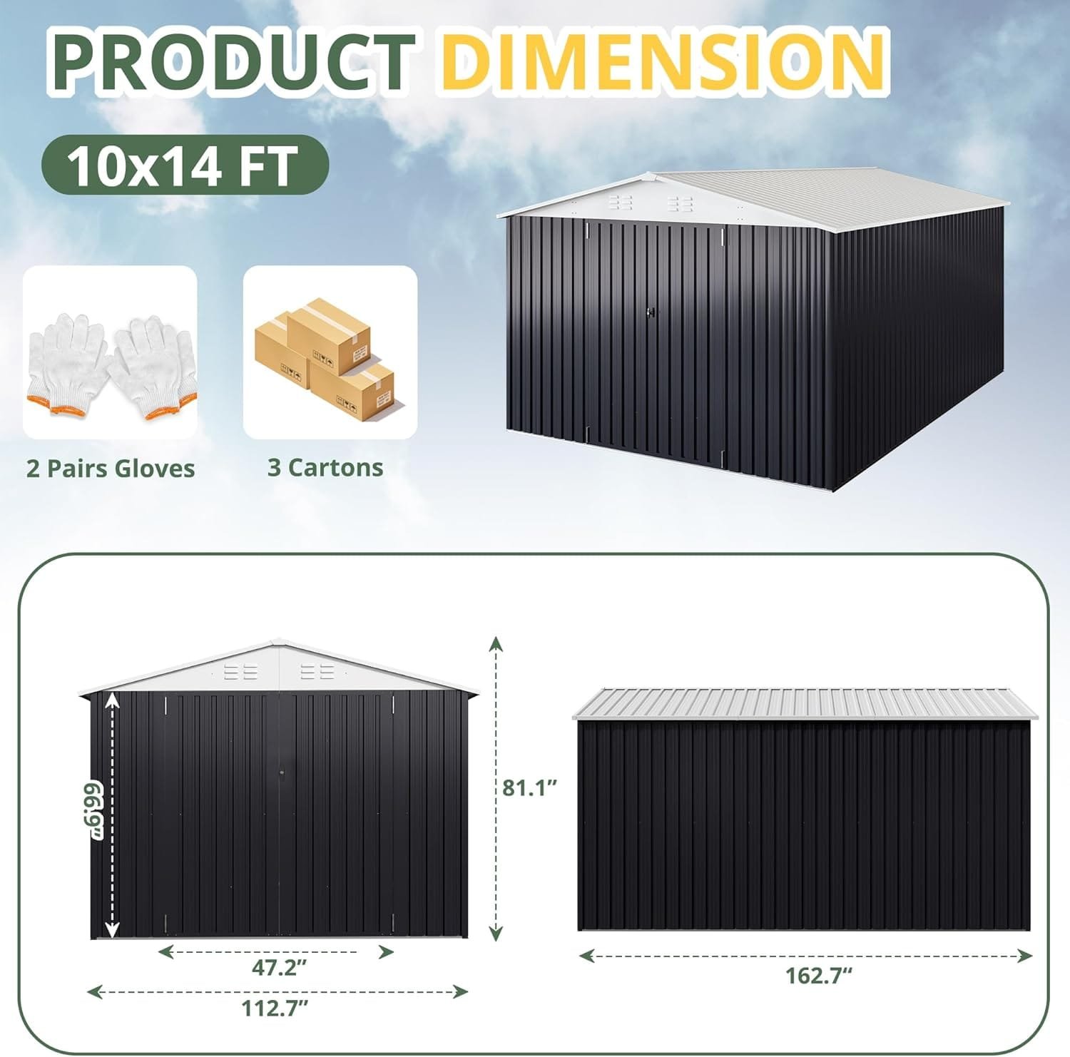 The VIWAT 10×14 Outdoor Metal Shed offers a generous and sturdy option for organizing outdoor equipment, tools, and supplies. Its robust construction and practical design make it a reliable addition to any backyard or garden.