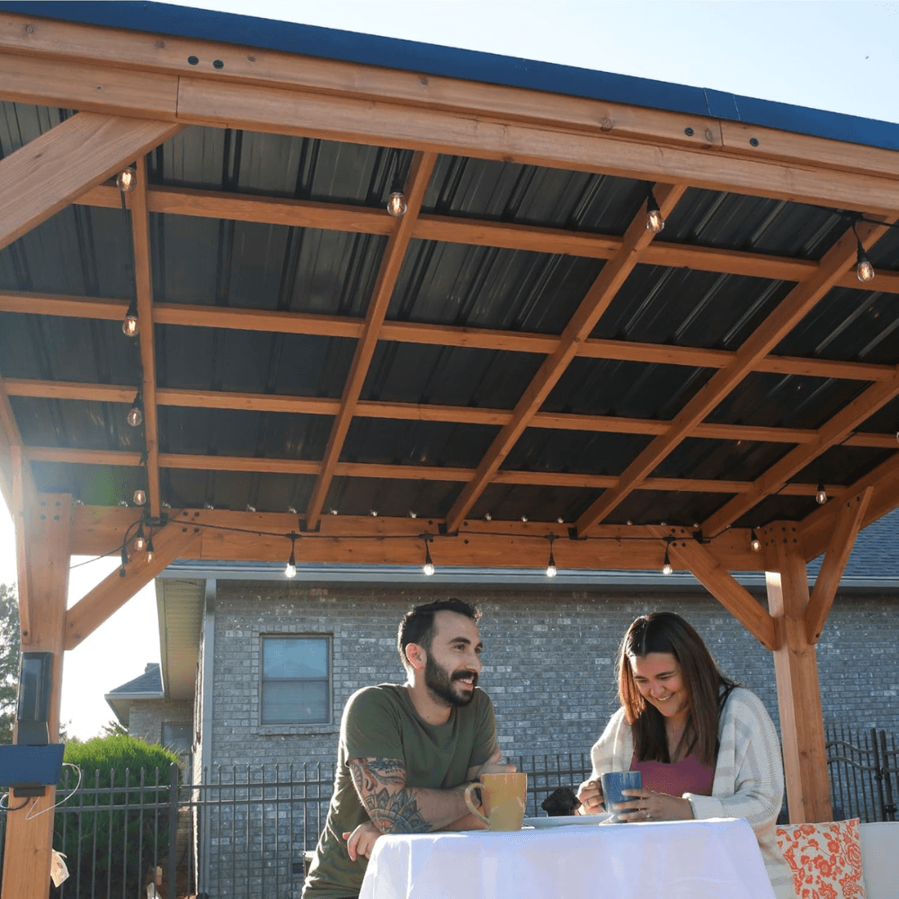 Upgrade your outdoor space with the Backyard Discovery Cedar Wood Gazebo, designed for year-round durability, timeless style, and exceptional strength. Crafted from 100% premium cedar wood, this PRO-TECT™ Tested & Proven structure offers superior weather resistance, a heavy-duty steel roof, and reinforced stability to create a reliable, all-season retreat for relaxation, entertainment, or outdoor dining.
