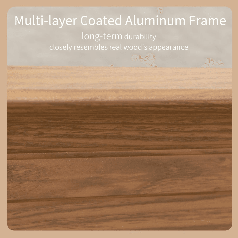 - Teak-finish powder-coated aluminum frame – elegant and durable for 4-season use.